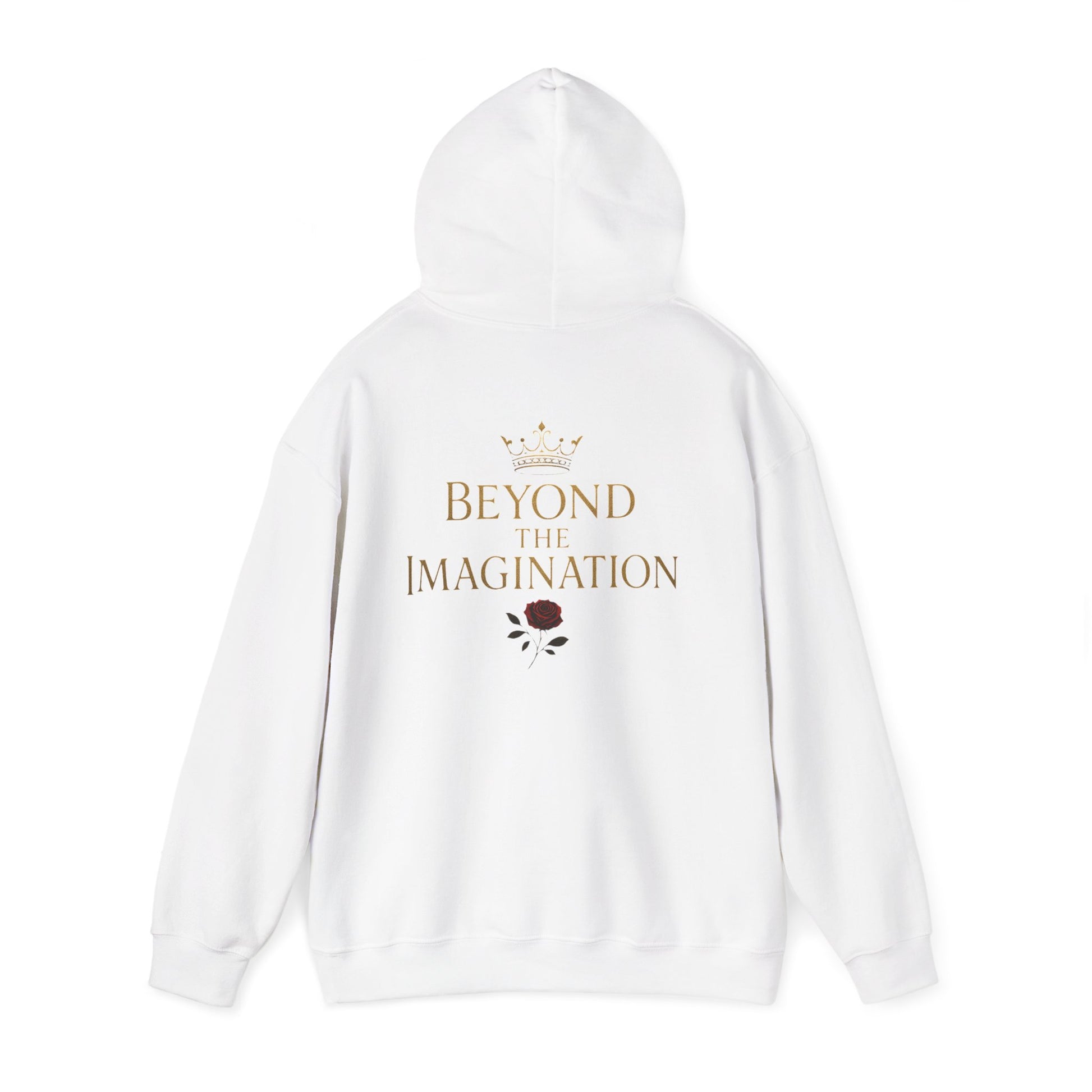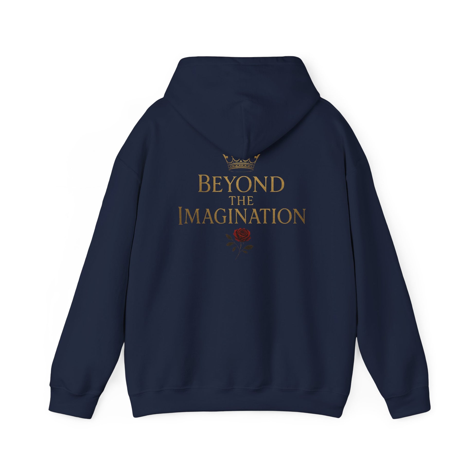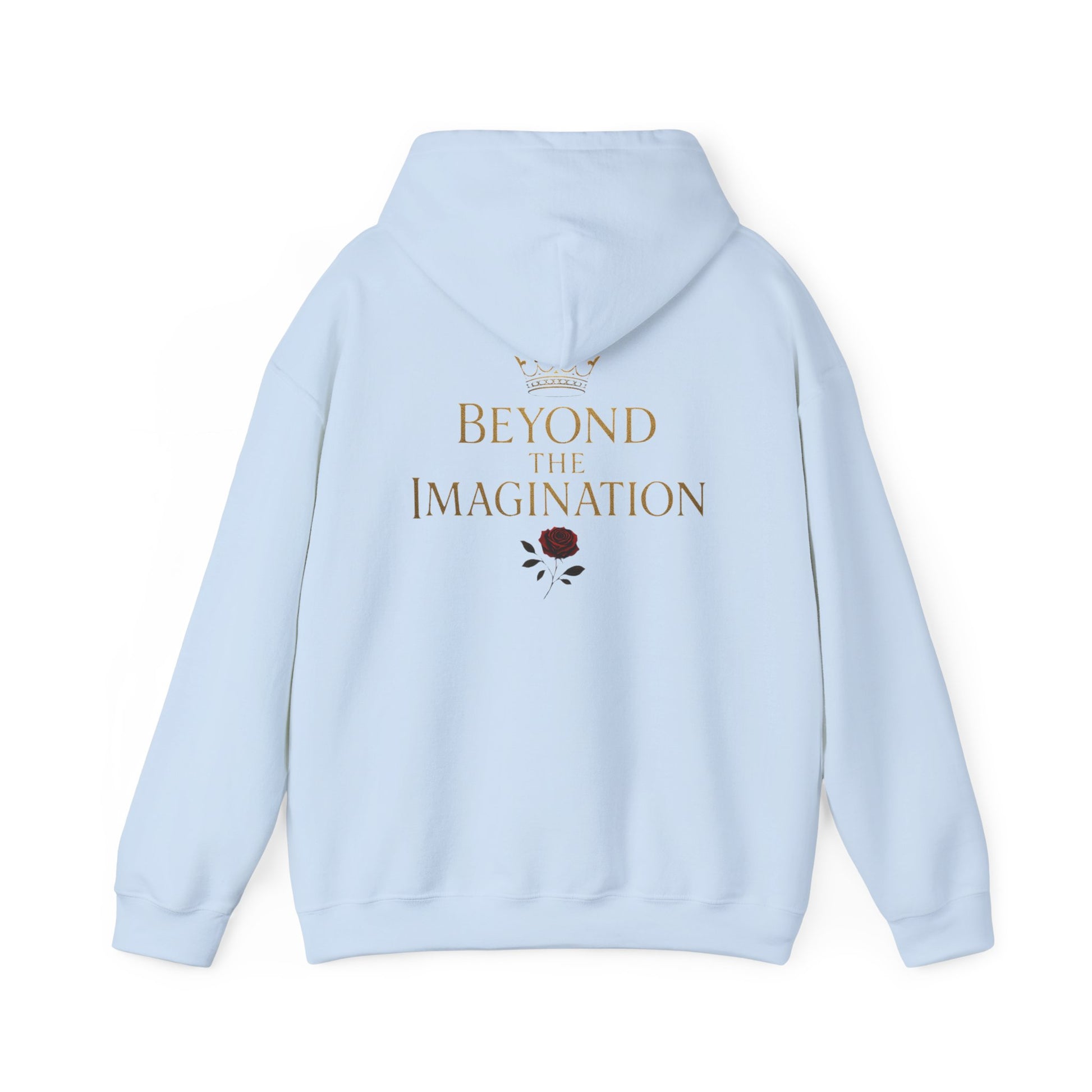 Step into a world where romance wears a crown and imagination knows no limits. This hoodie isn’t just warmth—it’s an emblem of the dreamers, the lovers, and the ones who rule their own stories. Designed with the signature “Beyond the Imagination” crown and rose motif, it symbolizes beauty, strength, and a love that refuses to fade.